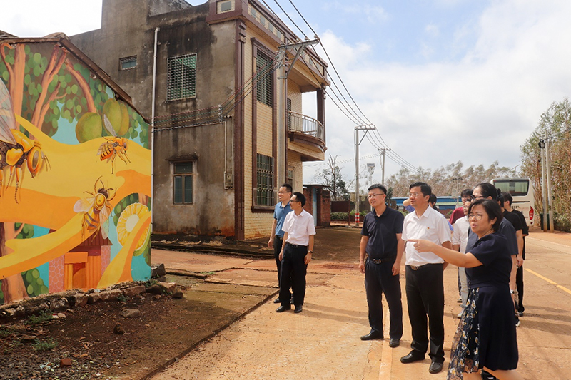 一行来到足荣村“紫枫青年林”,对遭受台风“摩羯”受损倒斜的树木进行培土扶正;到学院“双百行动”艺术赋能雷州足荣村规划设计项目墙绘区,实地查看墙绘并研讨项目开展思路、内容设计及下一步计划;到茂德公大观园参观,交流乡村旅游文创产品设计项目开展情况。学院还在足荣村举行了蜜蜂精神文创雕塑群筑立仪式,新雕塑群将配合墙绘点缀,成为足荣村特色景观。