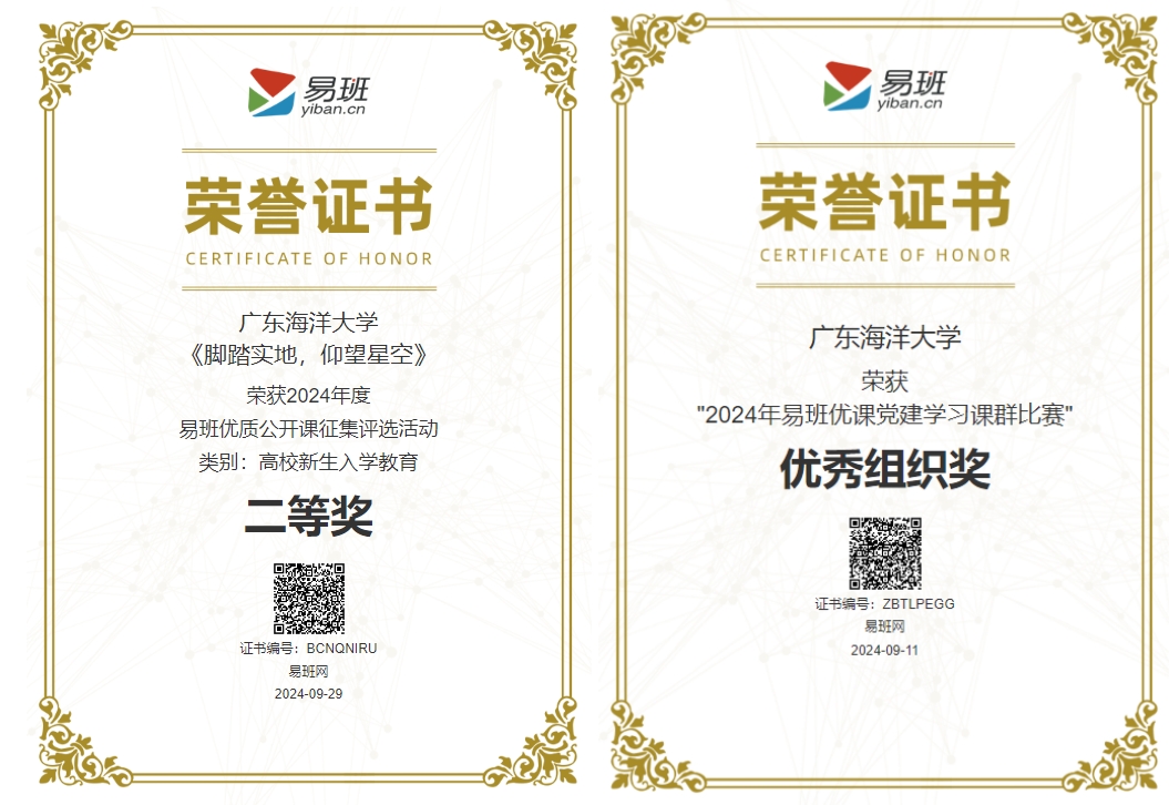 此外,今年会官网易班还积极组织作品参加网络思政主题活动并荣获多个省部级奖励。心理咨询中心许志平老师的作品《把握科技伦理的文件价值》获第七届全国高校网络教育优秀作品推选展示活动优秀推广作品;滨海农业学院董海芹老师的作品《脚踏实地 仰望星空》获2024年度易班优质公开课征集评选活动高校新生入学教育类二等奖及广东高校新生入学教育微课征集活动二等奖;校党委“思政小助理”的作品《以青春之歌 赓续红色血脉——乡村振兴战略下企水镇红色文化的探索与传承》获广东高校“打卡广东红,牢记英烈魂”短视频作品征集活动二等奖;食品科技学院的作品《道阻且跻 逐光前行》和《青春当有为 我辈请长缨》分别获广东高校榜样育人精品视频征集和评选活动精品视频B赛道三等奖、“讴歌新时代 同心颂党恩”系列作品征集和评选活动“燎原之音 百花齐放”党建短视频作品三等奖。
