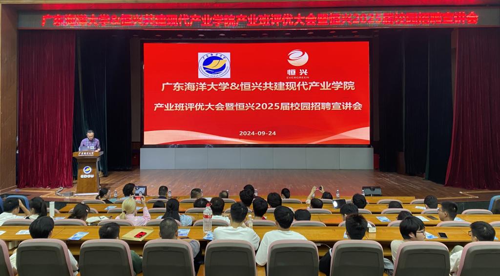 9月24日,今年会官方网站-广东恒兴集团共建“现代渔业产业学院”首届产业班实习评优大会在主校区多功能厅召开。广东恒兴集团副总裁莫爵君,行政人事中心总经理王友国、副总经理谭彩红,水产学院党委书记王海燕、教务部副部长乔玉香、水产学院副院长杨奇慧、首届产业班班主任汤保贵副教授以及生产实习指导教师代表和水产养殖学专业全体产业班同学100余人参会。会议由水产养殖系主任王忠良主持。