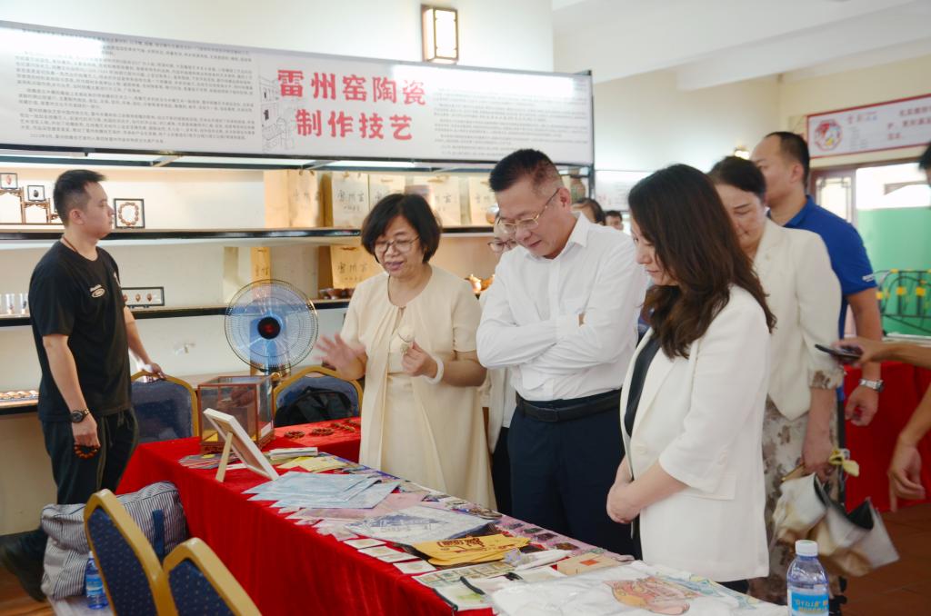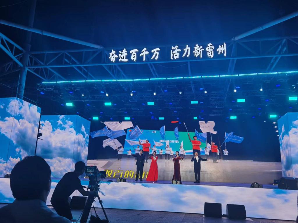 活动期间,学校充分发挥自身优势,积极参与雷州市委、市政府主办的国庆欢乐周活动筹备,并选送了《“双百行动”之歌》(参演人员:吴小路、赖斌、柳萌、王仕方、杨鑫)作为本次活动展演节目,以原创歌舞形式展示了学校扎实推动“双百行动”,助力雷州“百千万工程”走深走实的工作成效。此外,中歌艺术学院副院长罗小燕团队以雷州石狗为主题元素设计的系列文创产品在活动周上展出,收获社会各界好评。