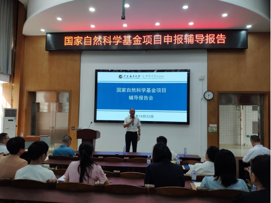 农学系任磊教授从自己申报国基的经历入手,和大家分享了题为《国家自然科学基金申请交流》的报告,阐述了标题、摘要、立项依据、研究内容、研究方案等部分的写作技巧,重点分析了申报书撰写细节,并对常见问题进行了讲解。