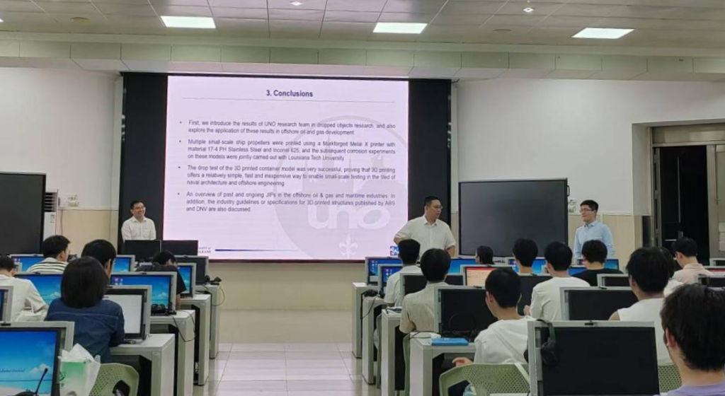 随后,余小川还分享了团队在3D打印技术在海洋工程应用领域的创新成果,结合实际案例展示了3D打印在海洋平台、管道维护及其他工程作业中的实际应用。通过实例,余小川展示了团队如何利用3D打印技术提升工程效率,并为未来的工程设计与改良提供了新的思路。