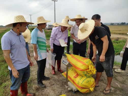 专家组现场称重稻谷