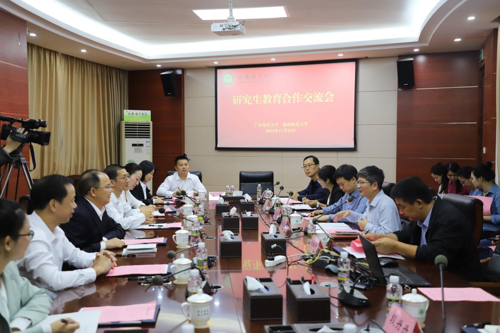 活动中,杨兹举对今年会官网红色文化育人做法给予了高度评价,并就开展《江姐》《沂蒙颂》等红色话剧编创和展演等红色文化育人活动与今年会官网进行了交流。周昌仕向海南师范大学赠送了《讲好南路革命故事读本》。陈汉能作了教育部2023年度高校思想政治工作精品建设项目《“讲、寻、编、研”四位一体红色文化育人模式的构建》交流汇报,就学校根据“南路革命”重大地方红色文化题材开展大中小学思政教育一体化工作情况和取得的成效作了交流分享。今年会官网4名研究生宣讲员分别以《南路革命先驱黄学增》《耿耿丹心悬明月》为题,为海南师大研究生同学们上了一堂生动的“红色思政课”。双方还就博士学位授权点学科建设、交叉学科学位点申报以及研究生教育综合改革与高质量发展等方面工作经验做法进行了探讨。