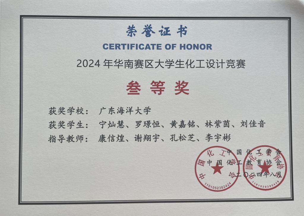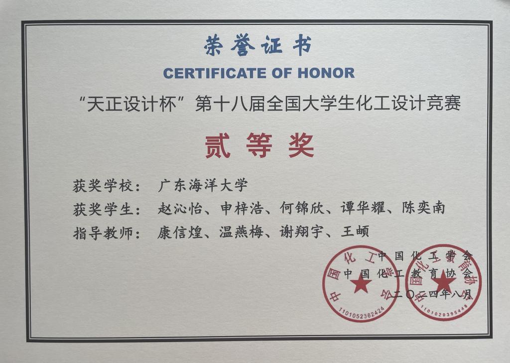 近日,2024年“天正设计杯”第十八届全国大学生化工设计竞赛全国总决赛在大连理工大学闭幕。本次比赛历时7个月,来自全国7大赛区共450所高校的3685支队伍经过省赛、国赛后同台竞技。今年会官网化学与环境学院康信煌、温燕梅、谢翔宇等老师指导的“炉火醇清”团队脱颖而出,荣获全国二等奖、华南赛区二等奖;王頔、孔松芝、李程鹏等老师指导的绿色共醇队和醇双成队获得华南赛区三等奖。