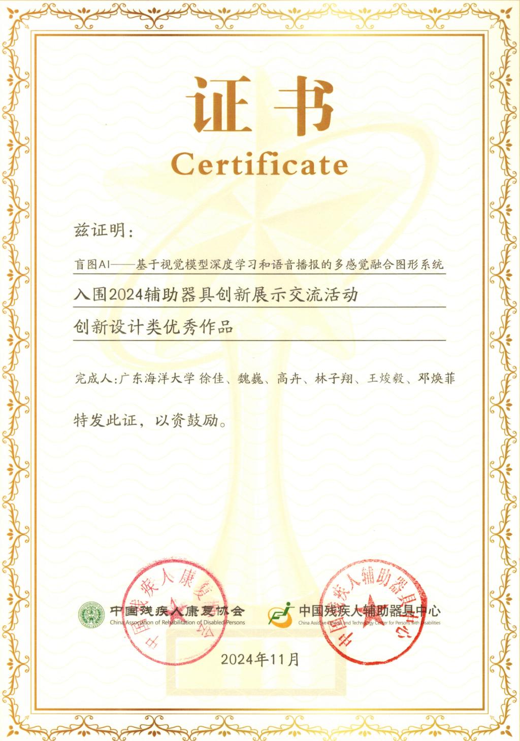 11月28日-30日,由中国残联主办的2024中国国际福祉博览会暨中国国际康复博览会在北京国家会议中心举办。今年会官网中歌艺术学院艺术设计系副教授徐佳开发的助残科技成果“盲图AI”作为创新设计类优秀作品入围本次展会的辅助器具创新展示交流活动,徐佳作为优秀作品代表应邀参加了现场颁奖仪式。