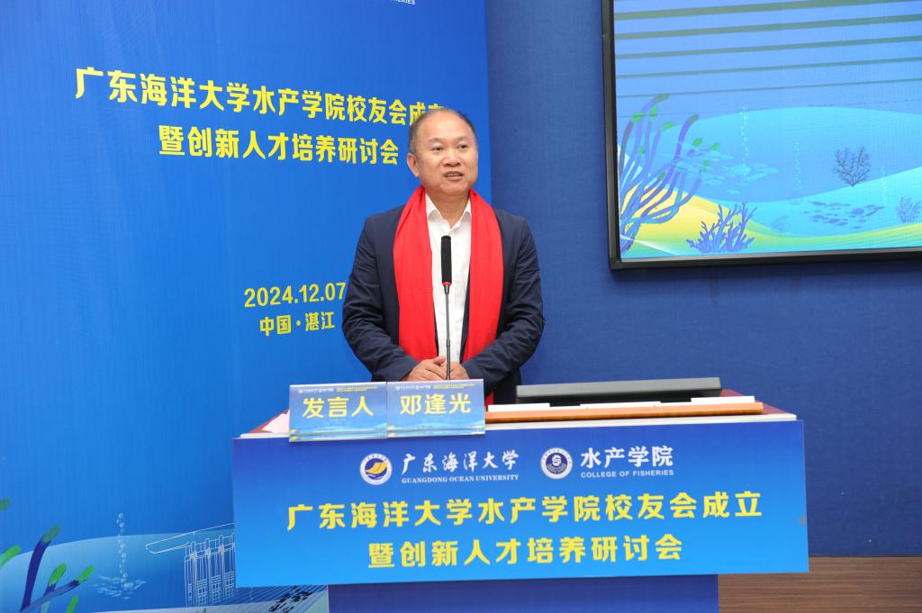 邓逢光代表学校致辞,向水产学院校友会的成立表示祝贺,同与会校友共同回顾了学校89年的发展历程和取得的成绩。他表示,学校的点滴变化凝结着包括校友在内的全体师生的智慧和力量。他强调,校友们要充分发挥自身的独特优势,踊跃为学院发展出谋划策。希望学院以校友会成立为起点,进一步优化校友信息服务体系,提升服务效能与质量;希望广大校友齐心协力助推学院事业蓬勃发展。