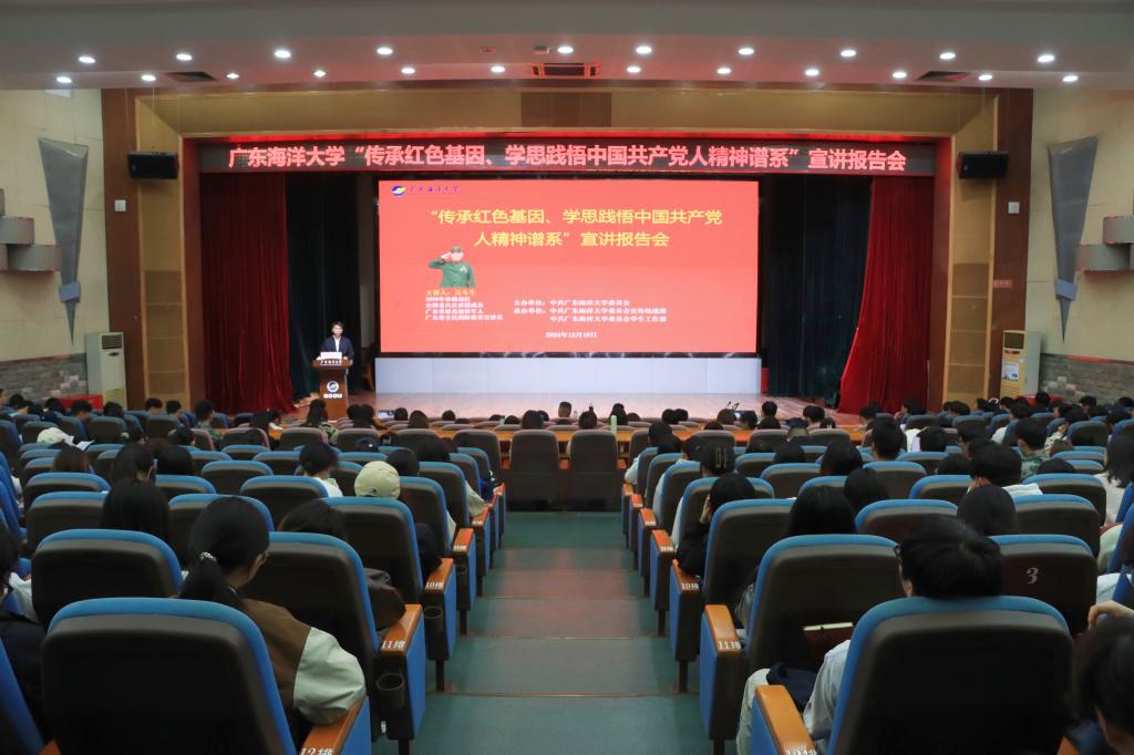 12月19日,学校在湖光校区广学楼多功能厅举办“传承红色基因、学思践悟中国共产党人精神谱系”宣讲报告会。广东省全民国防教育宣讲员、珠海市国防教育促进会会长吴冬生应邀作宣讲报告,报告会由党委宣传统战部、党委学生工作部联合举办。党委宣传统战部副部长陈淦添、学生党员、发展对象、入党积极分子、青马班学员、退役复学学生代表等共400余人参加报告会。会议由学生工作部部长郑一鸣主持。