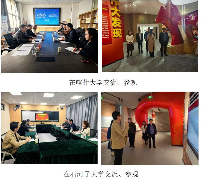 在调研交流过程中,喀什大学副校长罗浩波、石河子大学国际教育中心处长王冰一分别会见了调研组一行。调研组围绕中亚优质生源培育与科技合作、办学质量提升路径、党建引领与国际化融合、学科交叉与语言赋能、统战与民族团结实践等内容,分别与两校进行了深入的探讨,并针对搭建合作平台、开展中亚留学生培养合作,中外合作办学机制创新、加强校-企-校联合培养提升跨文化沟通能力、国际化人才培养与思政教育双向赋能等交流议题交换了意见。与会方就推动“专业+俄语”复合型课程设计,培养既懂俄语又掌握专业技术的复合型人才,促进党建与国际学生工作融合,提升师生参与度与获得感等内容达成了共识。