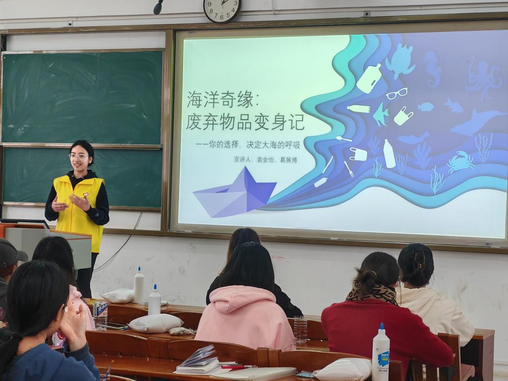 近日,经济学院团委青年志愿者协会举办“海洋奇缘:废弃物品变身记”主题活动。40名学子在知识宣讲中加深了对海洋环保的认知,在手工实践中改造废弃塑料瓶等数十件,实现了课堂知识与探索实践的有机融合。