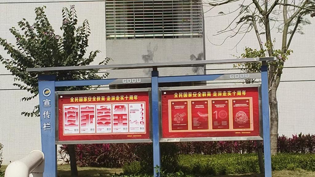 活动期间,校团委、保卫部组织学生参与湛江市国家安全人民防线建设工作小组拍摄宣传视频,作为广东省开展全民国家安全教育日宣传片的重要内容,不断提升广大师生对总体国家安全观的认识,推动国家安全宣传教育入脑入心;图书馆在入馆口摆放了国家安全宣传教育展板,通过理论阐释、案例解读等方式,诠释总体国家安全观的深刻内涵要义,推动大安全理念深入人心;宣传统战部在学校网站开设全民国家安全教育日专栏,在湖光校区海念、海园学生公寓大院设置了宣传栏,通过行政楼、广学楼及南门电子屏播放宣传标语和宣传画;学生工作部向学生推送国家安全宣传教育学习资料;保卫部在部门网站发布全民国家安全教育宣传手册、宣传片,利用校内电子屏滚动播放《守护·十年》宣传片,营造了浓厚的宣传教育氛围。