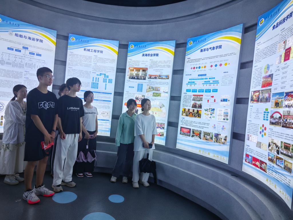 活动路线呈“心”形,师生们从望海楼出发,途经东山食苑、网球场、海洋广场等校园主要场所,最终返回望海楼。在校史馆参观环节,讲解员通过珍贵史料,生动讲述了学校90年来的发展历程。学院党委书记伍彬寄语同学们:“要永葆家国情怀和母校情结,将个人发展与国家、学校紧密相连,为国家建设和母校发展贡献力量。”