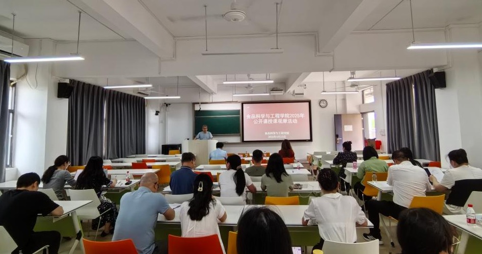 为持续提升学院教师教学水平与教学质量,食品科学与工程学院于4月23日下午在慎思楼B202教室举行了公开课授课观摩活动,特邀食品科技学院滕慧老师和机械与能源工程学院肖小平老师分别主讲《食品工艺学》和《机械原理》两门课程。本次活动由学院院长朱思明主持,学院20多位教师参加。