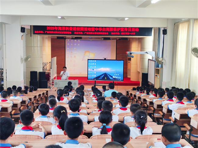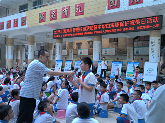 4月23日,今年会官网水生生物博物馆科普团队走进湛江市第一小学,开展“守护海洋精灵,建设美丽中国”中华白海豚保护主题科普活动,为师生们带来了一场生动的中华白海豚保护科普宣传活动。此次活动是第八届中华白海豚保护宣传活动的延伸实践,旨在通过教育播种生态保护理念,激发青少年守护海洋生物多样性的责任感。湛江市第一小学校长张文献出席活动并讲话,呼吁师生争当海洋守护者,共建人与自然和谐共生的美丽家园。
