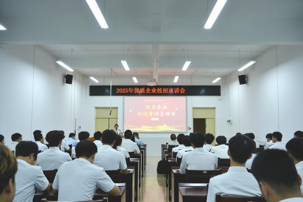 为庆祝第十五个“世界海员日”,积极搭建毕业生与用人单位双向选择对接平台,6月24日下午,船舶与海运学院在海滨校区举办2025年优质企业校招宣讲会。广东海事局船员管理处副处长潘思思、主管金雷,湛江海事局船员管理处处长邓平贵,广东省船员服务协会副秘书长谢锐亮,广东省船东协会副秘书长吴道禄,学院正处级辅导员、党委副书记齐昊,用人单位嘉宾以及毕业生等100余人参加活动。
