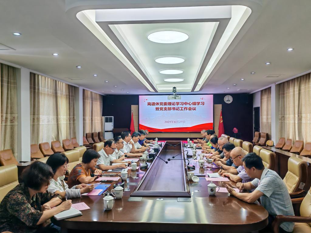 6月27日,离退休党委理论学习中心组学习暨党支部书记工作会议在霞山校区第一会议室召开。学校党委常委、副校长谭北平列席旁听。离退休党委书记许国炯主持学习会,离退休党委委员、纪委委员、各党支部书记及旁听工作小组成员参会。