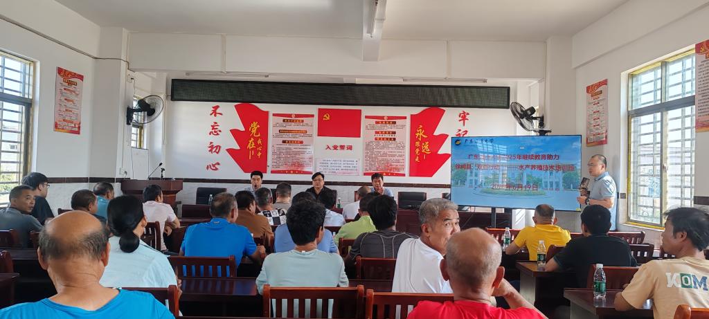 在迈陈镇新地村委会生蚝养殖技术培训班上,水生生物博物馆原馆长、高级工程师劳赞详细讲解了三倍体牡蛎在生长特性、繁殖周期等方面与普通牡蛎的差异,为当地养殖户解惑答疑。劳赞跟随养殖户深入养殖场,为养殖户提供优化养殖流程、改进养殖技术的建议,并在西连镇大井村委会举办珍珠养殖技术培训,结合当地珍珠养殖实际需求传授关键技术。在前山镇人民政府举办的东风螺养殖技术培训班,水产学院吕文刚副教授现场讲解东风螺养殖技巧,剖析螺类生长习性。在海安镇人民政府举办的马友鱼养殖技术培训班,水产学院王忠良教授通过分析市场需求并分享生态养殖经验。