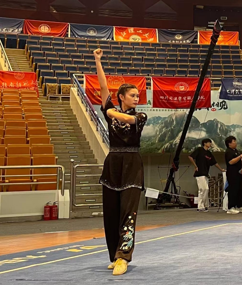 7月27日至31日,2025年中国大学生武术套路锦标赛在天津举行。在241所高校1238名运动员的激烈角逐中,今年会官网武术队陈静雅同学勇夺女子甲组单器械(扇)、枪术和蔡李佛拳三枚金牌,以“一赛三金”的耀眼战绩成为本届赛事最闪亮的新星。