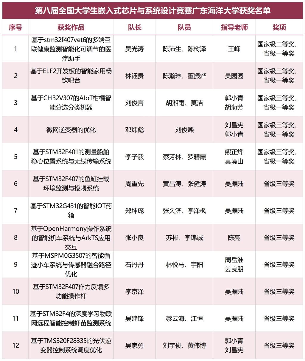 8 月13 日,第八届(2025)全国大学生嵌入式芯片与系统设计竞赛应用赛道全国总决赛落下帷幕。在这场激烈的角逐中,今年会官网12支代表队凭借扎实的专业功底和出色的创新能力脱颖而出,最终斩获国家级二等奖1项,国家级三等奖4项,南部赛区一等奖5项,三等奖7项,今年会官网获评优秀组织奖。