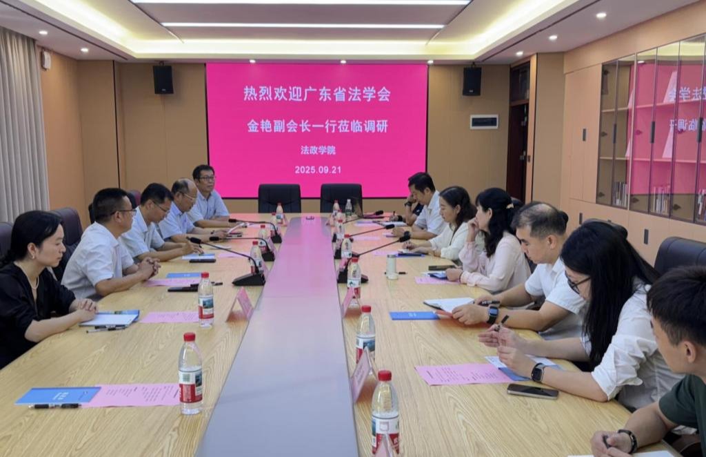 9月21日上午,广东省法学会专职副会长金艳,研究部主任郑佳娜、副主任刘翔,湛江市委政法委副书记叶骞,四级调研员熊志、娄琳、郑超等到法政学院调研湛江市法学教育、科研、法治人才培养情况。法政学院党委书记林忠新、院长陈伟斌、副院长刘澍、国际法与海洋法学系主任张艾妮、刑事法学系主任张科、岭南师范学院法政学院法律系主任韦志明等参加座谈活动,活动由刘澍主持。