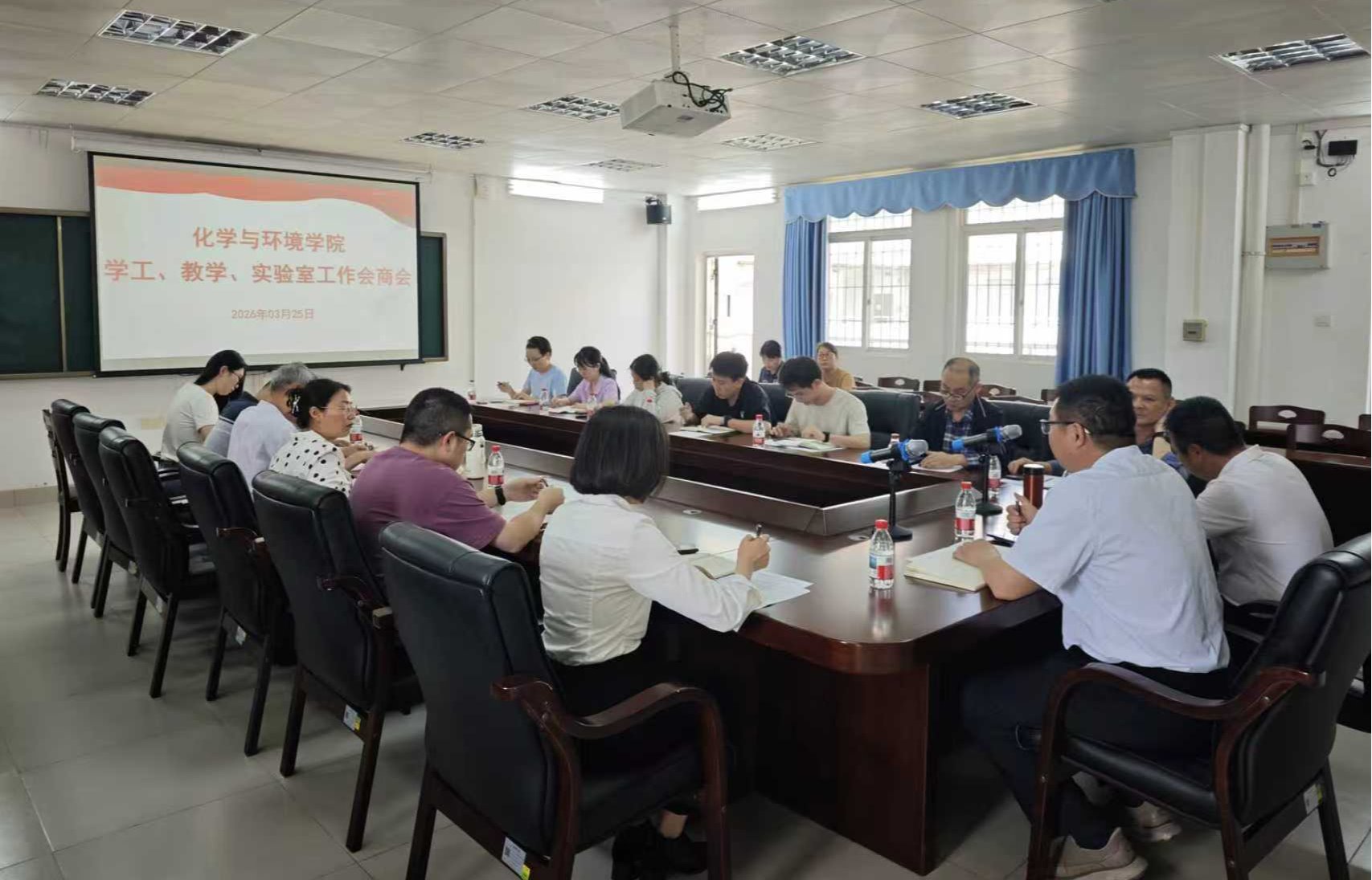 为深化立德树人根本任务,系统整合资源,凝聚协同育人合力,3月25日下午,化学与环境学院在望海楼B304会议室召开学工、教学、实验室“三线协同”工作会商会。会议由学院院长赵辉主持,党委书记何国明,党委副书记翁江峰,副院长孔松芝、李程鹏,各系中心负责人、教务员及全体辅导员共同参会。