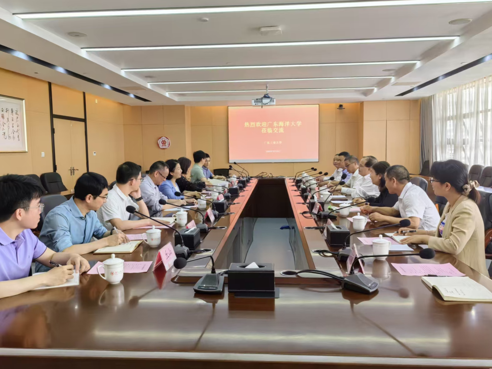 在广东工业大学,该校党委副书记朱蔚蔚介绍了该校近年来在学科建设、银校合作、财务管理等方面的总体情况。周昌仕高度评价广东工业大学在财务管理等方面所取得成绩,双方围绕首期及二期银校合作项目的推进机制、资金使用效益、风险防控等具体做法进行了深入交流。并就“十五五”规划编制中的财务保障思路、零基预算改革推进、项目库建设与滚动管理、开源节流举措以及学生学费收缴机制等财务管理核心议题展开深入探讨。