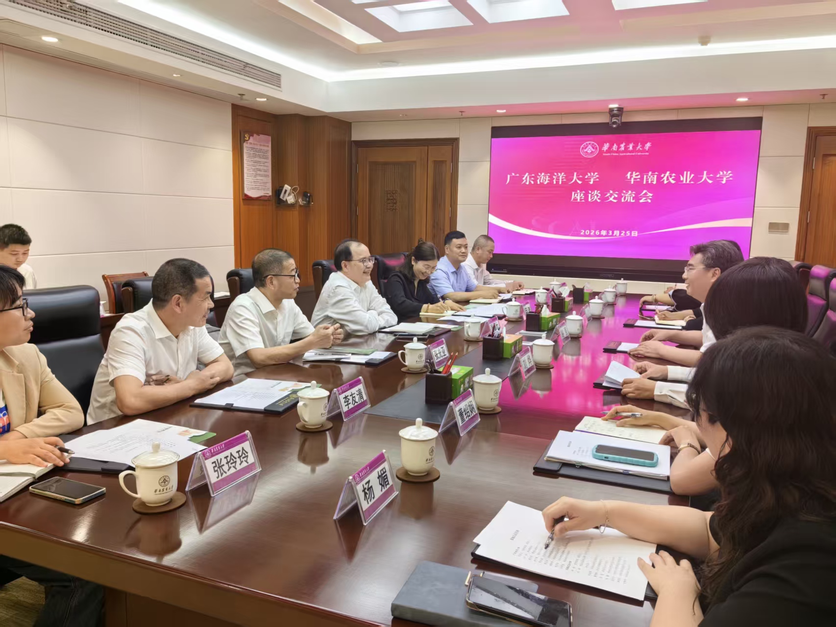 在华南农业大学,该校党委常委、副校长钟强介绍了该校“冲补强”专项资金管理、银校合作等方面经验做法,周昌仕表示两校渊源深厚,一直保持着良好的合作关系。在“十五五”规划编制背景下,两校就如何科学谋划财务保障重点方向、深化零基预算改革打破支出固化格局、拓展校办企业、继续教育培训等多元筹资渠道、完善学费收缴机制等内容进行了充分交流。