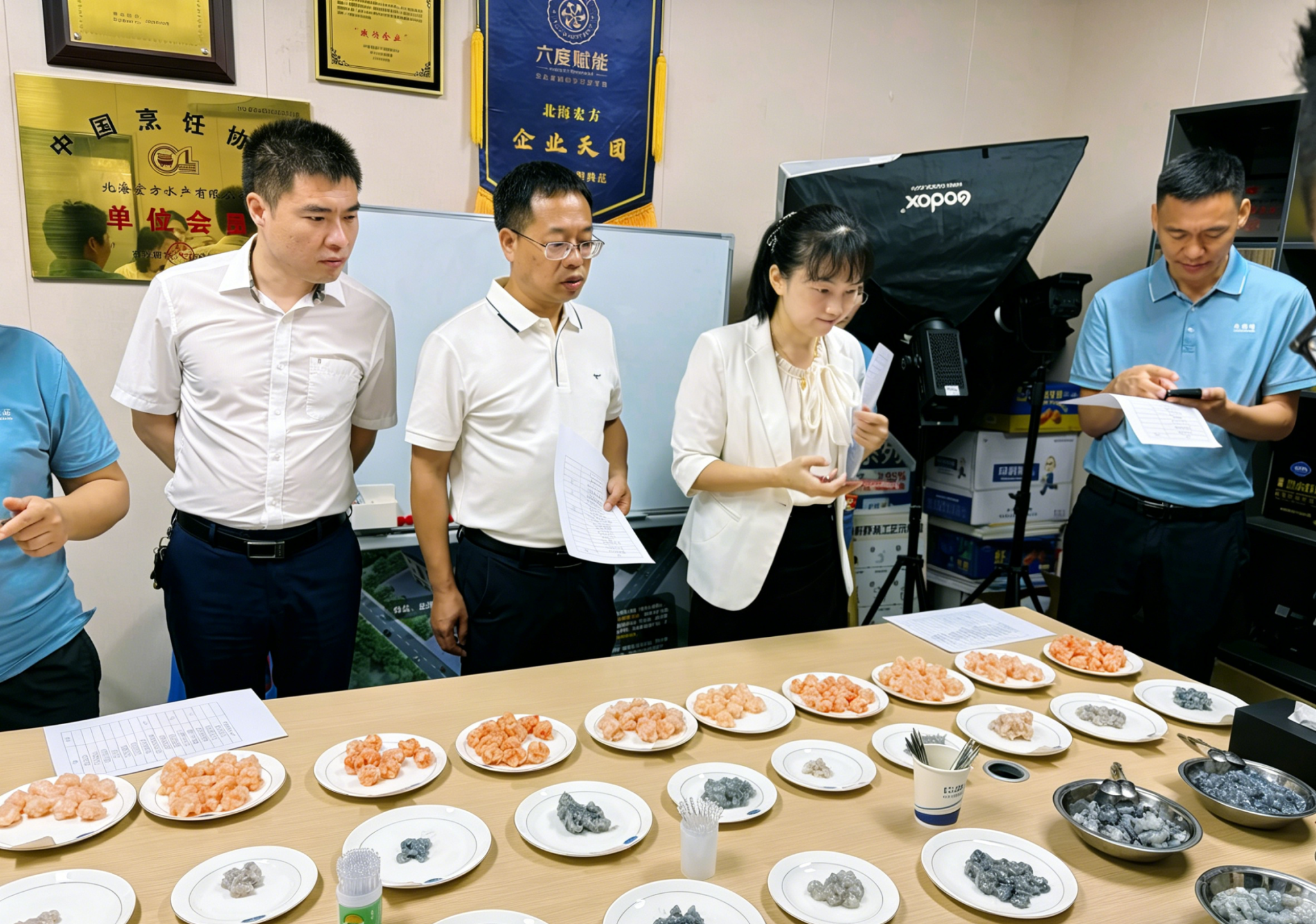 双方围绕“良德源”虾滑产品开展专题品鉴,从原料特性、加工工艺、质构调控、风味保持及冷链适配性等方面深入剖析了产品的优势与不足。刘书成教授团队结合虾滑加工的原料选择、加工技术、工艺参数与控制等方面提出了针对性的工艺优化方案和质量改进建议。双方还就技术研发、产品迭代、产业服务、人才培养等议题进行了广泛交流。