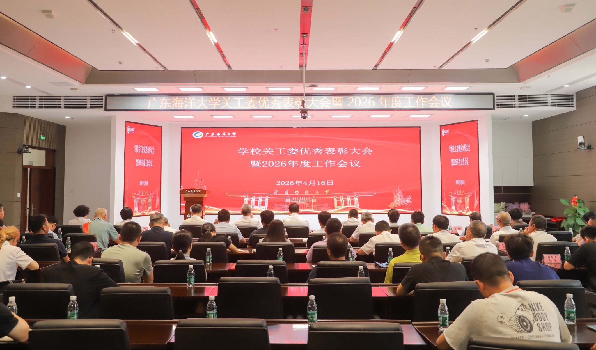 4月16日,学校关工委在湖光校区博文楼A202室召开优秀表彰大会暨2026年度工作会议。学校党委常委、副校长、校关工委主任谭北平出席会议并讲话。校院两级关工委成员、二级关工委常务副主任、辅导员、“最美五老”获奖同志、获奖师生代表等100余人参加会议。会议由校关工委常务副主任李茵主持。