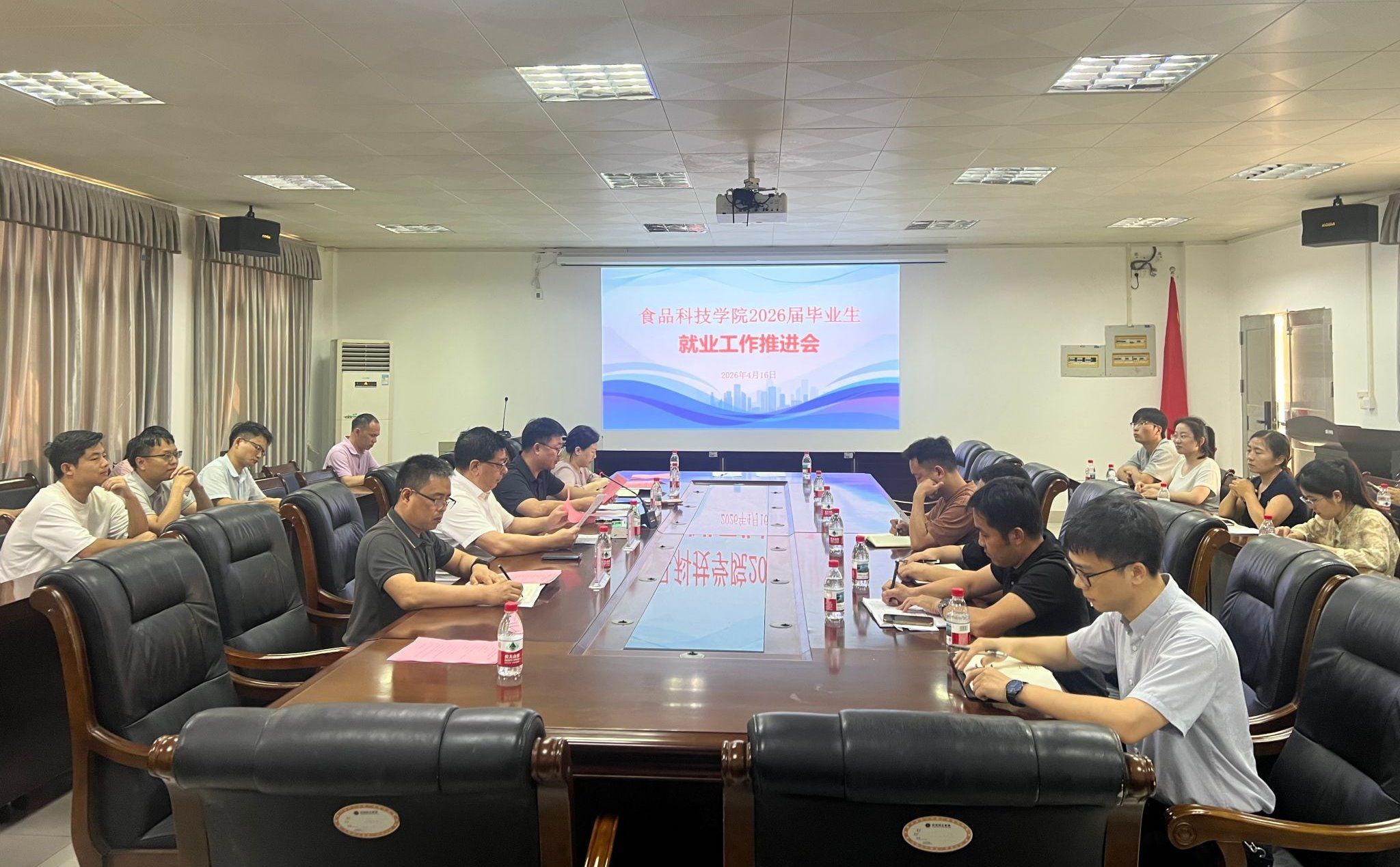 4月16日下午,食品科技学院在望海楼A105会议室召开2026届毕业生就业工作推进会。学校党委常委、副校长谭北平出席会议,学院党委书记伍彬,党委副书记罗智勇,副院长赵云涛、范秀萍,各系主任,2022级及2023级班主任、辅导员及毕业生代表参加会议,会议由伍彬主持。