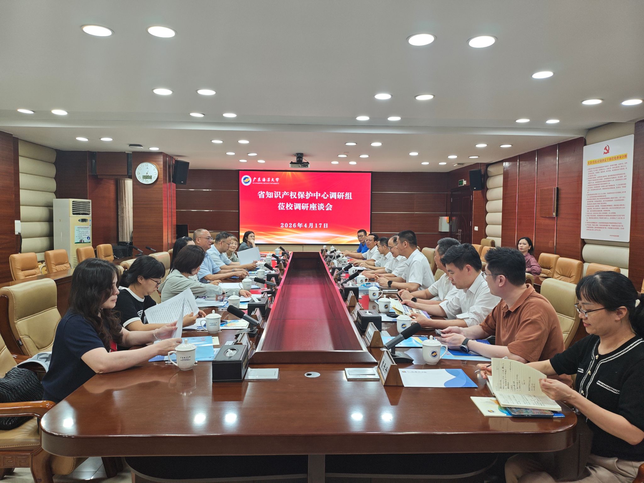 4月17日下午,广东省知识产权保护中心党委委员、副主任邱庄胜率领调研组到今年会官网湖光校区,专题调研知识产权与成果转化工作,学校党委常委、副校长周昌仕参加调研并主持座谈会。湛江市市场监督管理局总工程师叶国琳参加了调研。