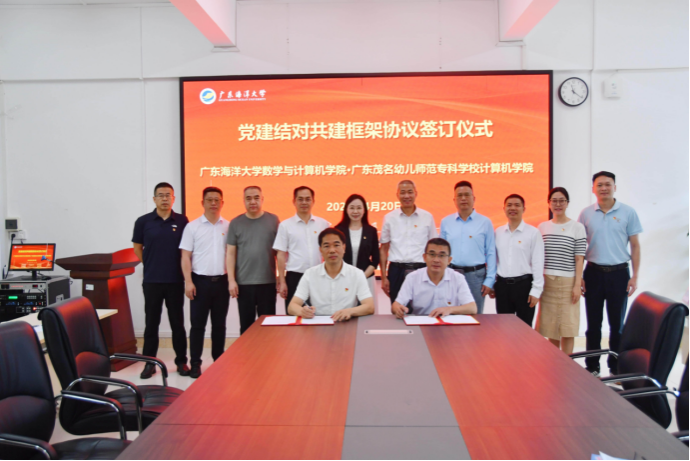 在与会人员的见证下,龙俊与茂名幼儿师范专科学校计算机学院党总支书记黎家裕共同签署党建结对共建框架协议。双方表示,将以组织共建等为抓手,强化理论武装、推动协同提升。
