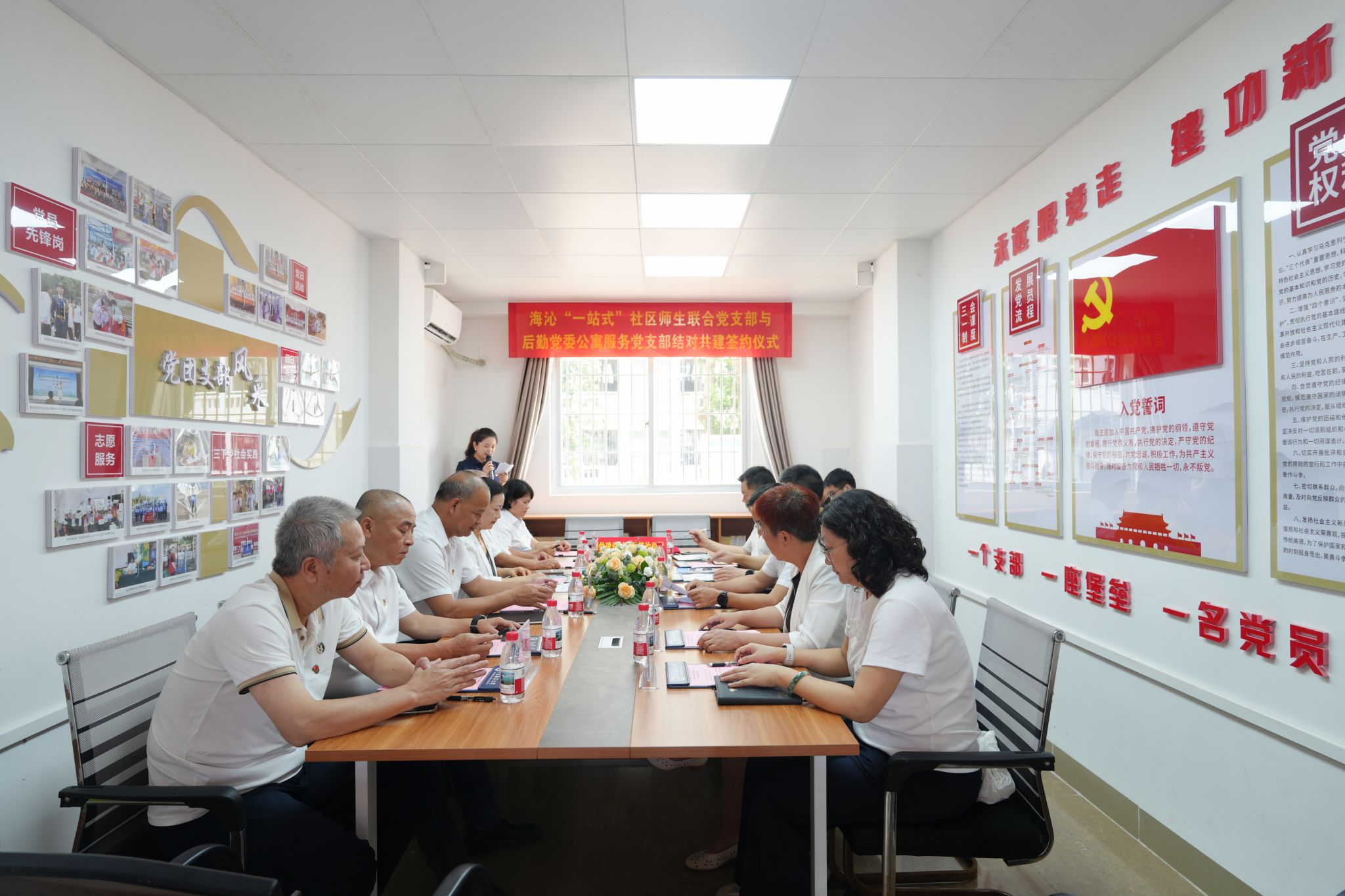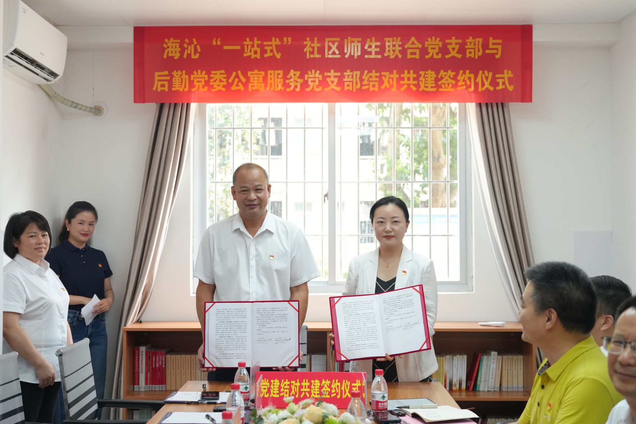 4月21日下午,学校海沁“一站式”社区师生联合党支部与后勤党委公寓服务党支部结对共建签约仪式在海沁“一站式”学生社区举行。学校党委组织部部长曾庆新、管理学院党委书记李育芳、后勤党委书记董萍、后勤保障部部长曾昭茂、党委学生工作部副部长陶柳清,共建双方党支部书记、管理学院党委副书记曾艳芳和后勤保障部学生公寓服务中心主任郑绍峰,以及共建双方党支部委员和学生党员代表参加活动。