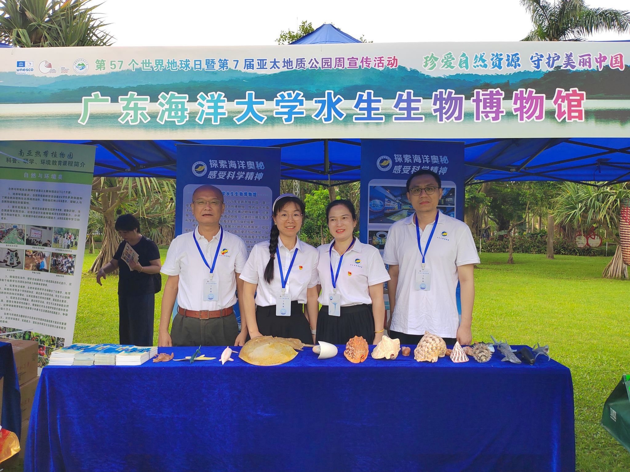 2026年4月22日是第57个“世界地球日”,今年主题为“珍爱自然资源 守护美丽中国”。当日上午,第57个世界地球日暨第7届亚太地质公园周宣传活动在湛江市三岭山森林公园正式启动。学校水生生物博物馆积极参与本次活动,通过科普讲解、标本展示、资料发放等多种形式,为公众带来了一场内容丰富、互动性强的科普盛宴,以实际行动唤起人们对自然资源保护的重视。