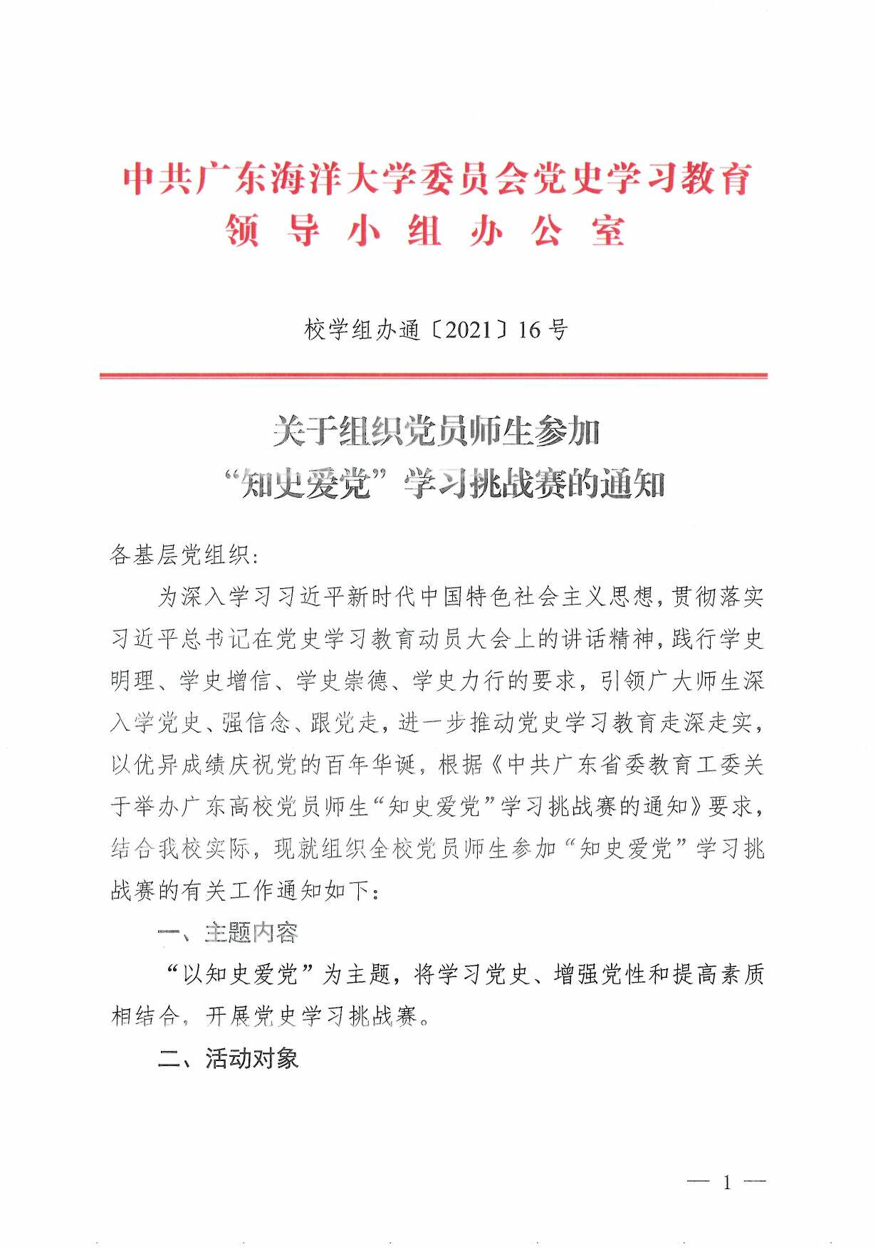 关于组织党员师生参加“知史爱党”学习挑战赛的通知