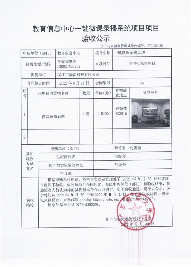 教育信息中心一键微课录播系统项目验收公示