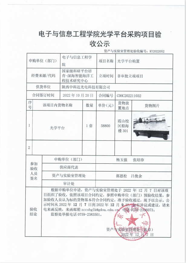 电子与信息工程学院光学平台采购项目验收公示