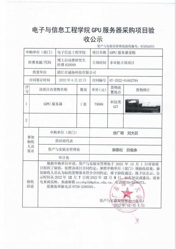 电子与信息工程学院GPU服务器采购项目验收公示