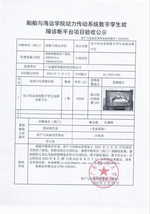 船舶与海运学院动力传动系统数字孪生故障诊断平台项目验收公示