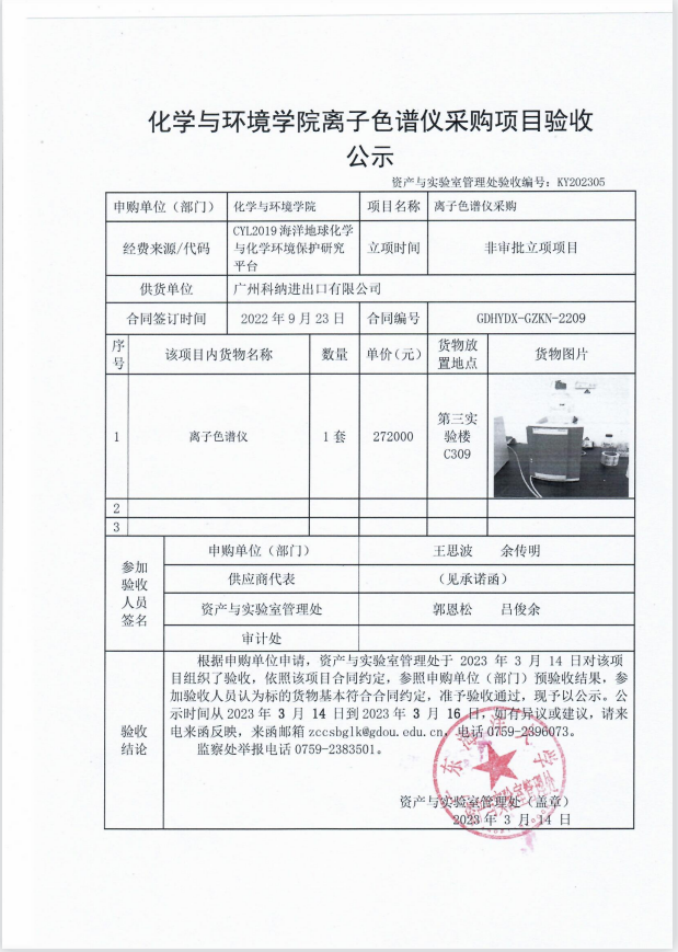 化学与环境学院离子色谱仪采购项目验收公示