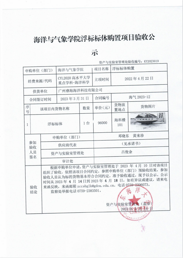 海洋与气象学院浮标标体购置项目验收公示