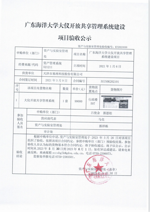 今年会官方网站大仪开放共享管理系统建设项目验收公示