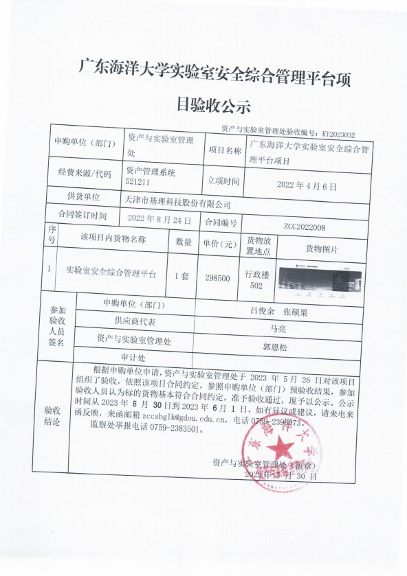 今年会官方网站实验室安全综合管理平台项目验收公示