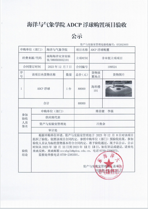海洋与气象学院ADCP浮球购置项目验收公示