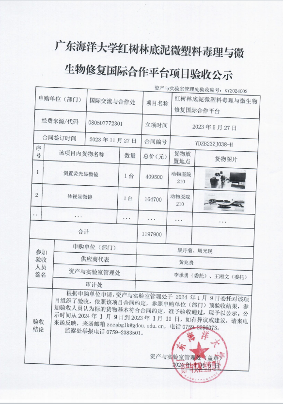 今年会官方网站红树林底泥微塑料毒理与微生物修复国际合作平台项目验收公示