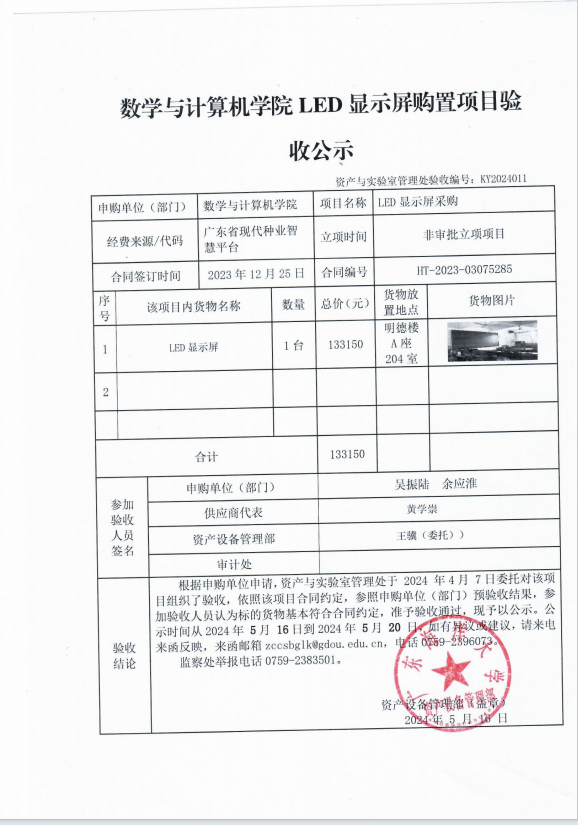 数学与计算机学院LED显示屏购置项目验收公示
