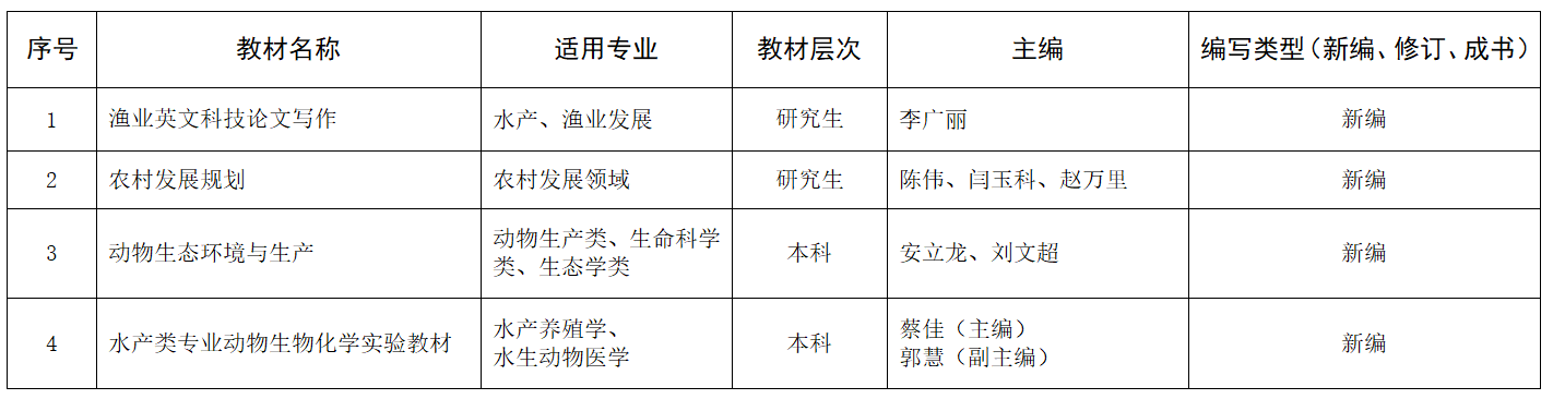 关于拟推荐申报全国高等农林院校“十四五”规划教材的名单公示