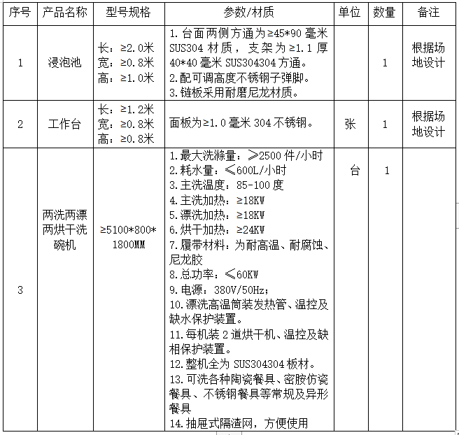 说明:除洗碗机参数、材质不得改变之外,其他设备均需要根据场地情况和采购人要求重新设计。